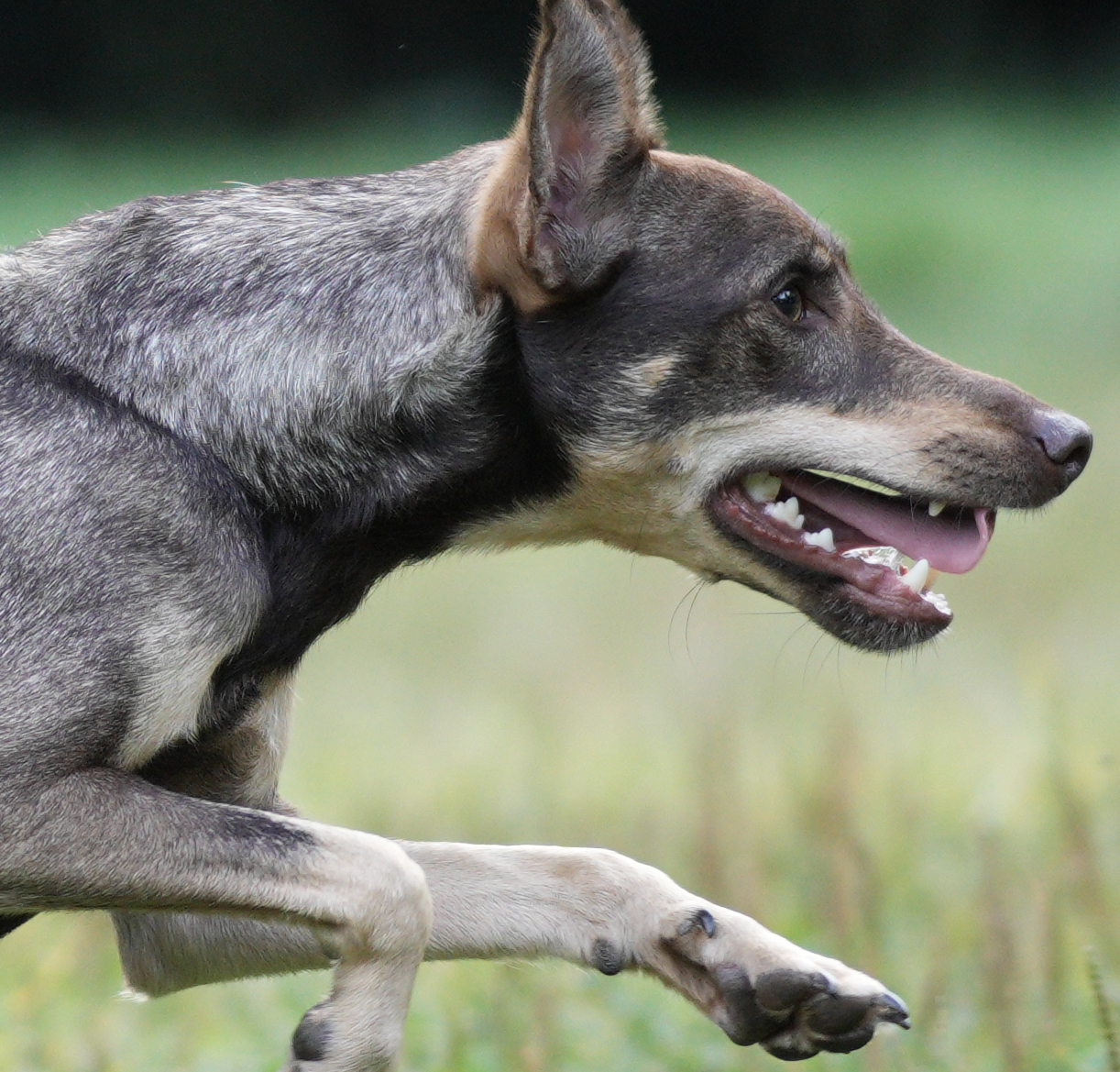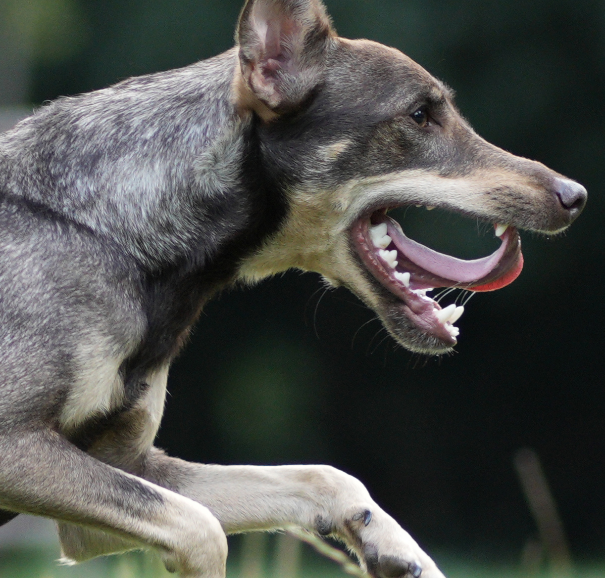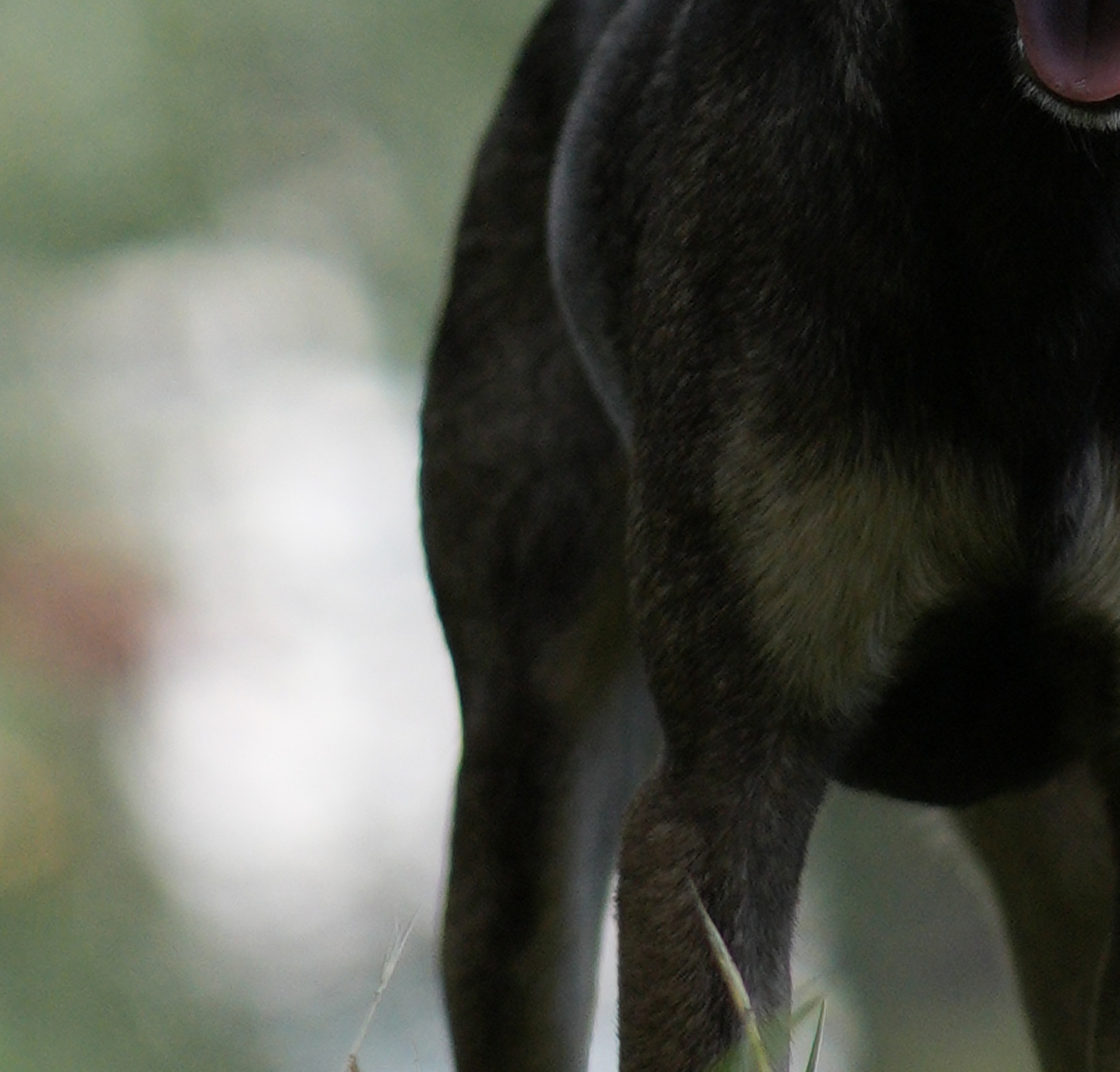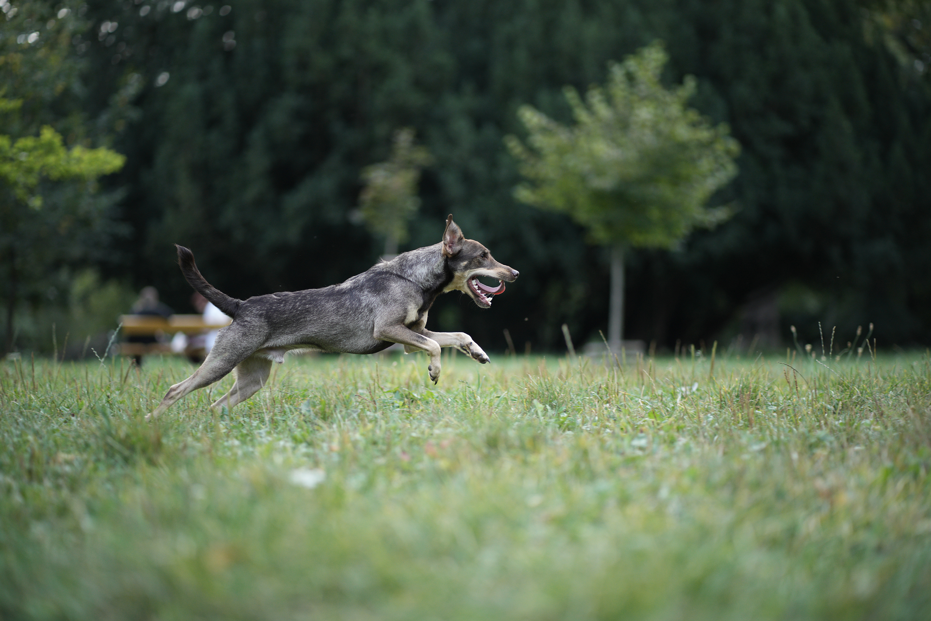 Pomalu se blížíme k závěru a nedá mi nezmínit ještě jednu zásadní věc, která mi na obou objektivech vadí. Tím je minimální zaostřovací vzdálenost, která je až 80 cm. Zkoušela jsem s oběma objektivy nafotit pejska jak skáče na místě, ale pořád přeostřovali na pozadí (foto vlevo). Vypla jsem také sledování očí a ostřila jedním bodem, který jsem umístila psovi na hruď, jelikož má menší hlavičku, chtěla jsem pro test co největší plochu na ostření. Pak mi došlo, že jsem něco málo přes půl metru od něj, takže objektivy nebyli schopny zaostřit a přeostřovali pozadí. Po odstoupení nebyl již s ostřením problém (foto vpravo). Výslední ostrou fotku nedávám jen proto, že jsem sice zaostřila, ale z předešlého focení jsem měla špatně nastavený foťák a fotky byli tmavé. Pejskovi se pak již nechtělo skákat, tak jsme to zabalili a šli fotit běhání, co ho moc bavilo.