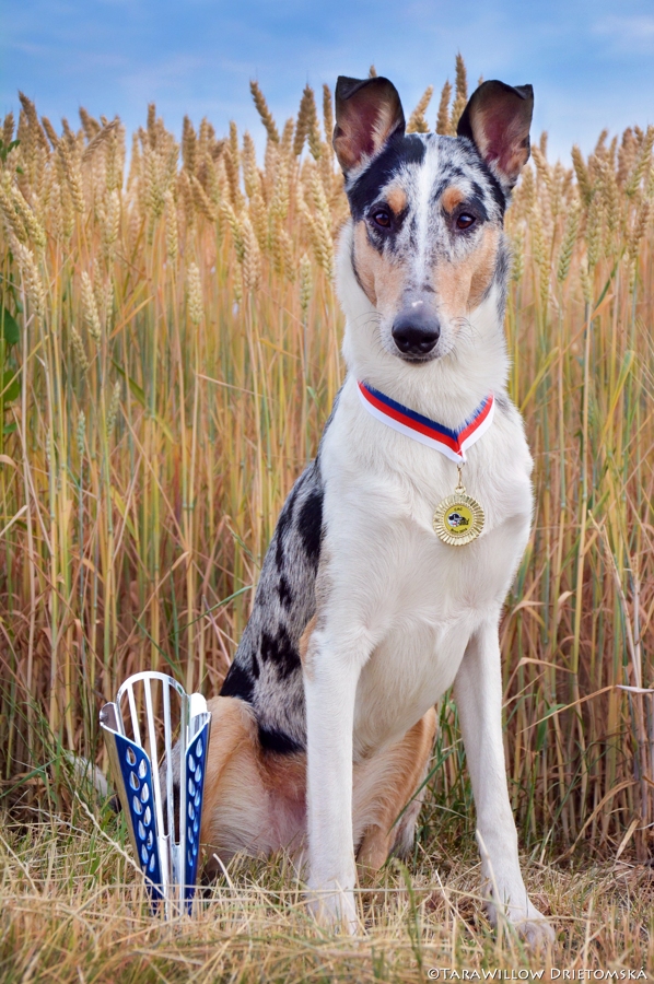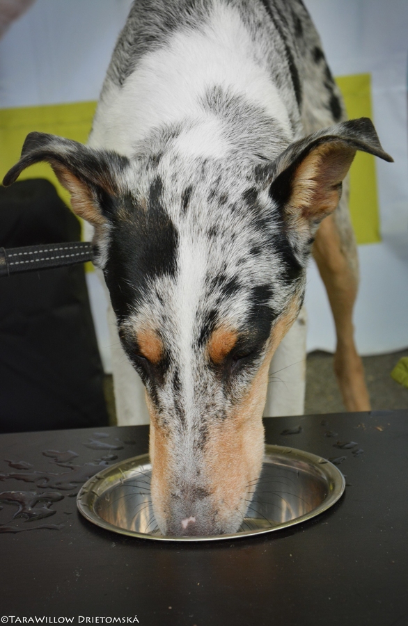 ndividuálnom prezretí psích postojov zodvohol pán Javorčík ruku do tretice a s prstom hore ukázal na nás a vyhlásil BOB! Aj keď mi to bolo spočiatku jedno musím uznať že takéto ocenenie bolo neskutočné! Nečakala som že si z Čiech po fiasku v Boleslavi vôbec niečo odnesieme! Tara bola vskutku jedinečná a bolo vidieť že si tú pozornosť užíva. Zahrnula som ju všemožnými pamlskami a priznávam, neubránila som sa slzičke dojatia. Všinite si že stále nikde nie je žiadne "ale"! Krásny to deň čo poviete :D Rozhodli sme sa počkať do záverečiek, kde sme mali niečo za BOB-ika dostať. Ďakujem Lenke a Lixovi, že čakala s nami. Boli sme si kúpiť niečo hnusne nezdravé a mäsité na neskorý obed a Tarku som nechala vybrať si so sušených dobrôt čo len chce. Vybrala si sušené uško a vo vedľajšom stánku nás pozvali do "psoštaurácie", kde si Tara s Lixíkom pochutili na kapsičke s granulkami, podľa ich výberu! Bola to zábava, no ako plynul čas, bolo treba ísť späť, kde záverečné súťaže začínali o 14:30. Pri ceste späť sme stretli pána rozhodcu ktorý nás pochválil a povedal že dúfa, že ideme do záverečiek! Musím priznať že ma to kdesi v hĺbke potešilo a začala som byť rada, že tam ideme. Súťaže trvali dlho a čakanie bolo nekonečné, no nakoniec sme sa predsa len dočkali. Vošli sme do kruhu s tými najlepšími predstaviteľmi 1. FCI skupiny a už to, že sme boli pred zrakom toľkých ľudí bola pre nás obrovská pocta. Posudzovala nás pani Ridarčíková, ktorá si každého jedinca nechala predviesť v postoji a pohybe tak, aby nič nezanedbala a vybrala top jedincov. Keď sme sa všetci predviedli, urobil sa užší výber 5tich psov. Taru menovala do výberu ako prvú čo bolo milé. Pred začatím som zaregistrovala 3 stupne víťazov a pomyslela som si že nato nemáme šancu a mala som pravdu, pretože Tara získala 5. miesto. Poďakovala som sa a ostala na mieste, no pani Ridarčíková ukázala na stupienky a až vtedy som si uvedomila, že sú tam pridané ďalšie dve miesta s pohármi! Zalapala som po dychu a prešla si ku nášmu stupienku! Bola som úplne rozčarovaná a v úžase- som zvedavá na fotky ako sme sa tam tvárili. Takže výsledok záverečných súťaží je BOG 5. miesto 1.FCI +umiestnenie sa na stupni víťazov! Po chvíľke fotenia sme si s pani Ridarčíkovou potriasli rukami a mohli sme sa vydať do nášho prechodného domova. Opäť nás viezol Lenkyn úžasný priateľ a po príchode sme sa rozhodli psiská poriadne vybehať. Vzali sme naše ceny a išli sme na pole urobiť pár spoločných spomienkových fotiek, po ktorých si deti pobehali a ponaháňali králiky. Po úspešnom dni a báječnej večeri sme zaľahli a spali spánkom spravodlivých, ktorý sme si dopriali do 7dmej ráno. A viete čo je najkrajšie? Celý deň NEmal jediné "ale"! :D